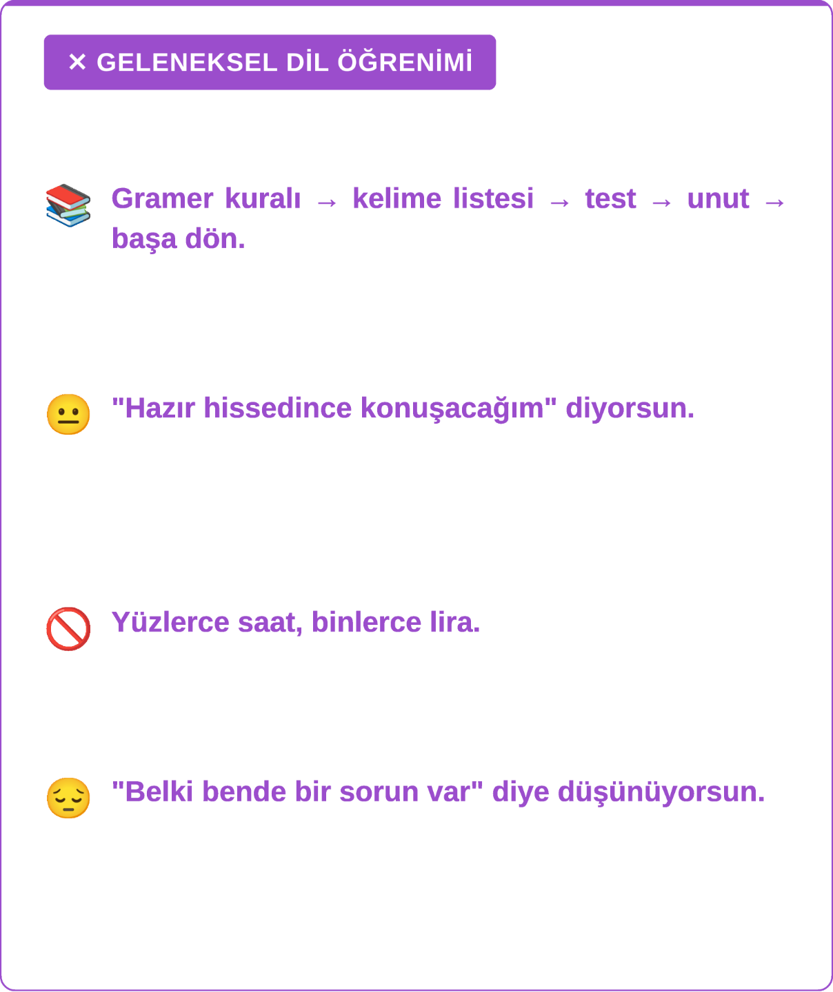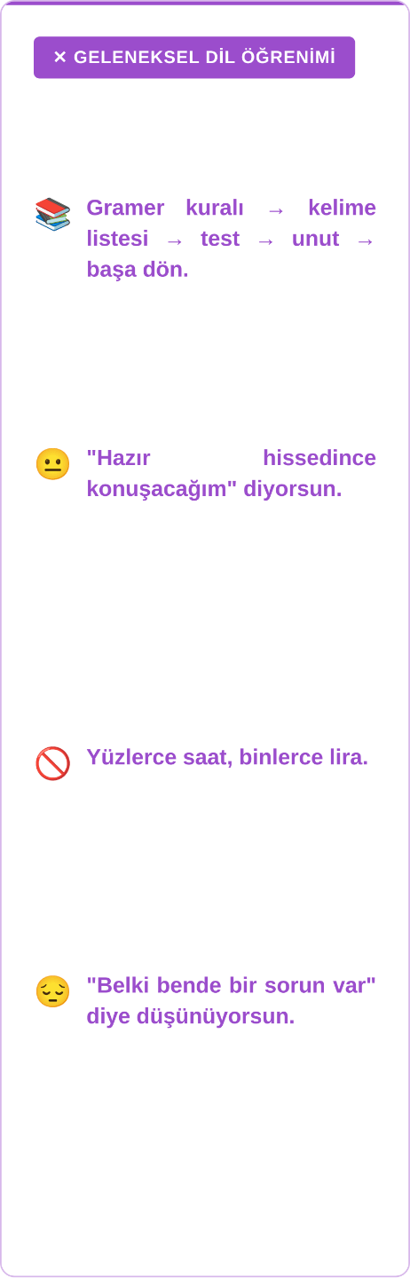 EĞİTİMLER ALDIN. KURSLARA GİTTİN. UYGULAMALAR İNDİRDİN. HALA AKICI YABANCI DİL KONUŞAMIYOR MUSUN?