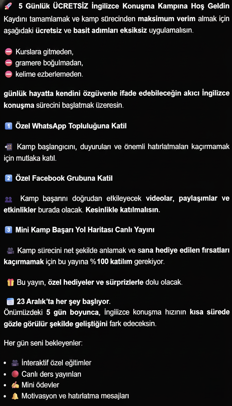 İngilizce Konuşma kampına Hoş Geldiniz!